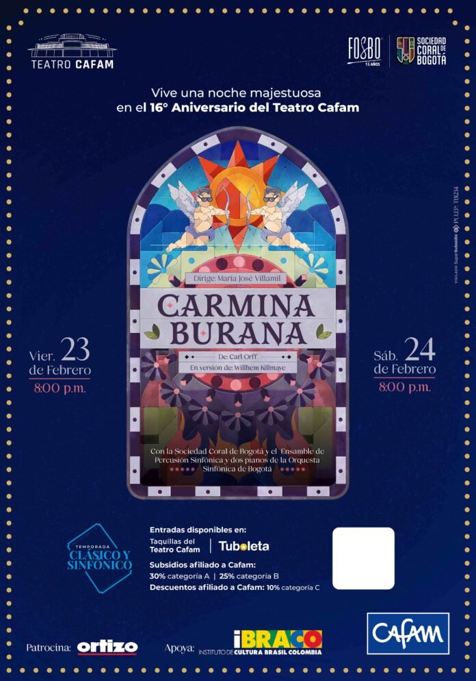 Sin duda esta será la oportunidad para deleitarse con esta icónica obra sinfónica, que contará con más de 70 artistas en escena de la Fundación Orquesta Sinfónica de Bogotá FOSBO y que nos llevará a un viaje musical por el amor, la fortuna, la fiesta y una visión terrenal de la vida, en una alianza con el Teatro Cafam, comprometido con la cultura de nuestro país.
