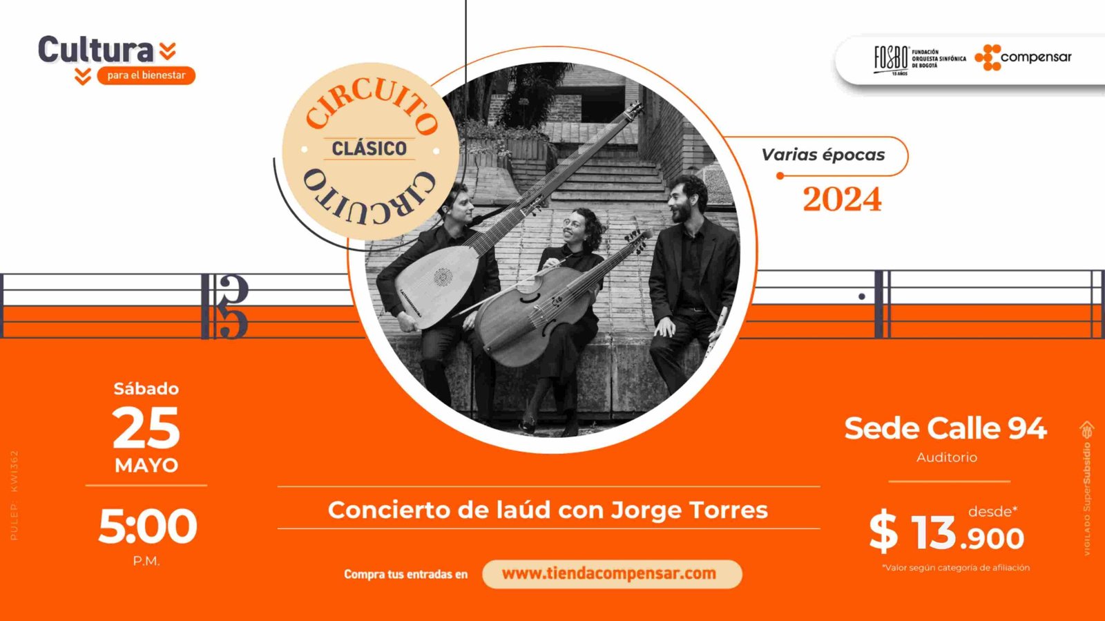 En esa creativa y rigurosa programación del Circuito Clásico cuyo objetivo es acercar todos los movimientos, facetas y épocas de la música a nuevas y diversas generaciones se programó para el sábado 25 de mayo un Concierto Láud con Jorge Torres, a partir de las 5 de la tarde en el Auditorio de Compensar de la calle 94.