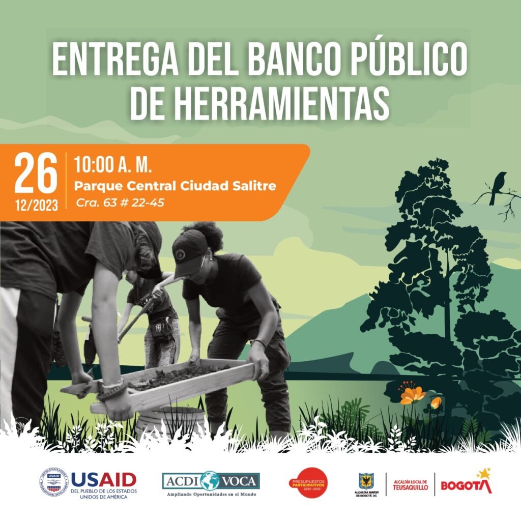 Este martes 26 de diciembre vamos a entregar a dos iniciativas ambientales herramientas y, estas quedarán a disposición de la comunidad para seguir cuidando y embelleciendo la localidad “Teusaquillo, tejedora de redes de educación ambiental”