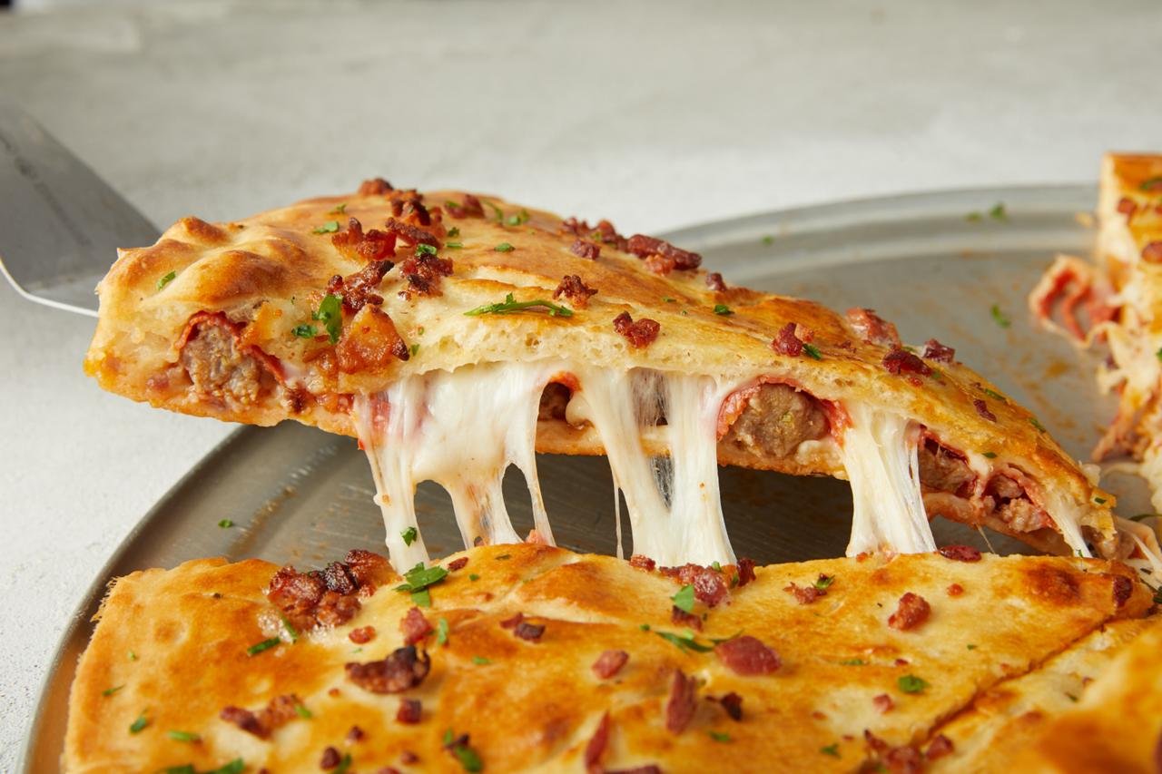 Con queso mozzarela, salchicha italiana, tocineta, pepperoni y queso parmesano, hecha a mano en doble base de masa fresca , cada una de las pizzas de 30 centímetros de diámetro es para compartir entre 4 ó 6 personas, al mejor estilo de New York.