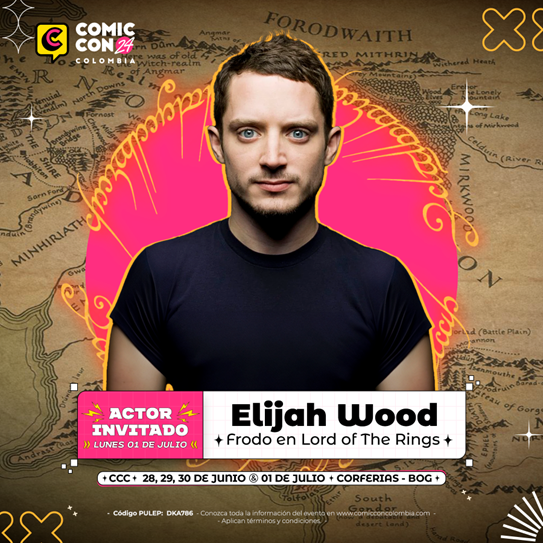 Directamente desde la Tierra Media, llega a Comic Con Colombia Elijah Wood, quien protagonizó la saga de películas “El Señor de los Anillos” (The Lord of the Rings), interpretando a Frodo Baggins, basada en la obra maestra del escritor J. R.R. Tolkien.