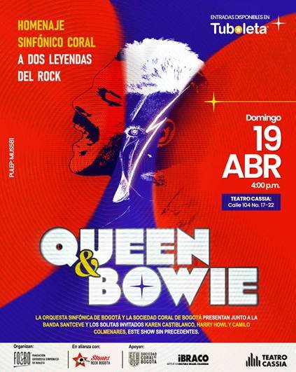 Bogotá se prepara para una noche donde el rock adquiere dimensiones sinfónicas y el escenario se transforma en un puente entre la historia y la emoción contemporánea. Dos figuras eternas de la música mundial, Queen y David Bowie, serán celebradas en un espectáculo sinfónico-coral que promete intensidad, elegancia y potencia sonora.