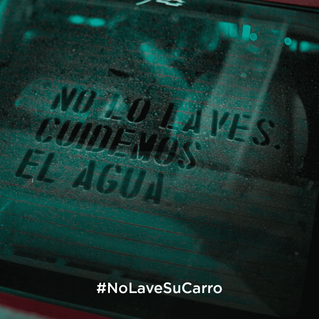 #NoLaveSuCarro es el título de la iniciativa enfocada no solo a ayudar a ahorrar agua en Bogotá y a que los habitantes de la capital tomen conciencia de la importancia de cuidar este preciado líquido sino que además está apoyando el trabajo de las personas que derivan su sustento del servicio de lavado de carros y que , dada la coyuntura, no podrán hacerlo. Ahora ellos son Mensajeros del Cuidado Ambiental.