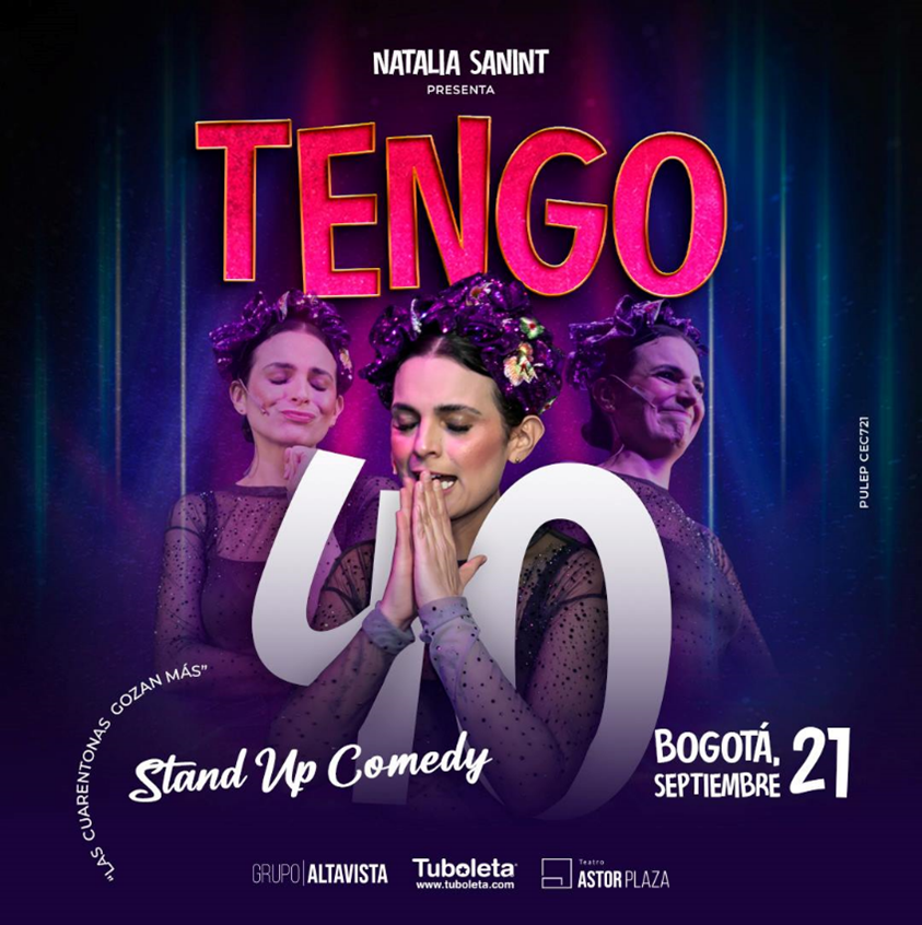“Tengo 40”, es parte de la obra creativa de la humorista y locutora Natalia Sanint. Una muestra en tarima que habla de todo lo que nos toca a los cuarentones… Vida en pareja, nuestra salud, ¡vida social. Un recorrido desde que éramos niños con una puesta musical de la época, historias muy graciosas acompañadas de una interacción con el público todo el tiempo.